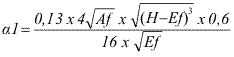 Le taux α permettant de déterminer la surface utile d'une installation d'exutoires ou d'un ensemble d'évacuation de fumée est une fonction qui dépend de la surface du feu (Af), de la hauteur moyenne sous plafond (H) et de l'épaisseur de la couche de fumée (Ef).