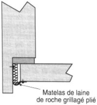 Latéralement, à plus de 1,20 m, l'étanchéité aux fumées et gaz chauds est assurée par un mastic d'étanchéité à l'air et à l'eau entre profilés tubulaires et maçonnerie. En revanche, s'il existe une cavité entre dormant et maçonnerie, celle-ci est remplie par une laine minérale de roche ou de verre comprimée (figure 7).