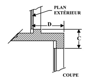 La valeur D est mesurée en supposant que la façade de l'étage inférieur est dans le même plan que celle du nez de plancher de l'étage supérieur. D n'est pris en compte que si sa valeur est supérieure ou égale à 0,15 m.
