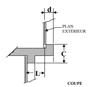 La valeur de cette avancée L n'est à prendre en compte dans le D qu'au-delà de 0,80 m et la valeur du retrait d n'est prise en compte dans le calcul de D qu'à partir de 0,15 m :