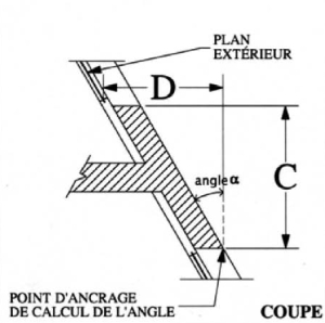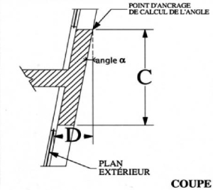 Si α ≤ 15° : on applique les règles de façades, on mesure C selon la verticale et D est égal à 0.