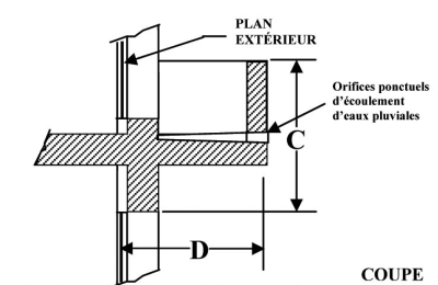 Ils sont pris en compte pour la mesure de C s'ils répondent aux exigences du paragraphe 1.2.1. Toutefois, des orifices ponctuels d'écoulement d'eaux pluviales, de diamètre maximal de 80 mm, peuvent traverser ces garde-corps.
