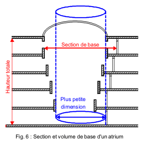 Le volume de base de l'atrium est le produit de cette section de base par la hauteur totale de l'atrium, mesurée au plafond du dernier niveau.