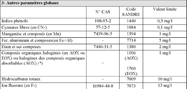 VLE POUR REJETS AQUEUX DANS LE MILIEU NATUREL