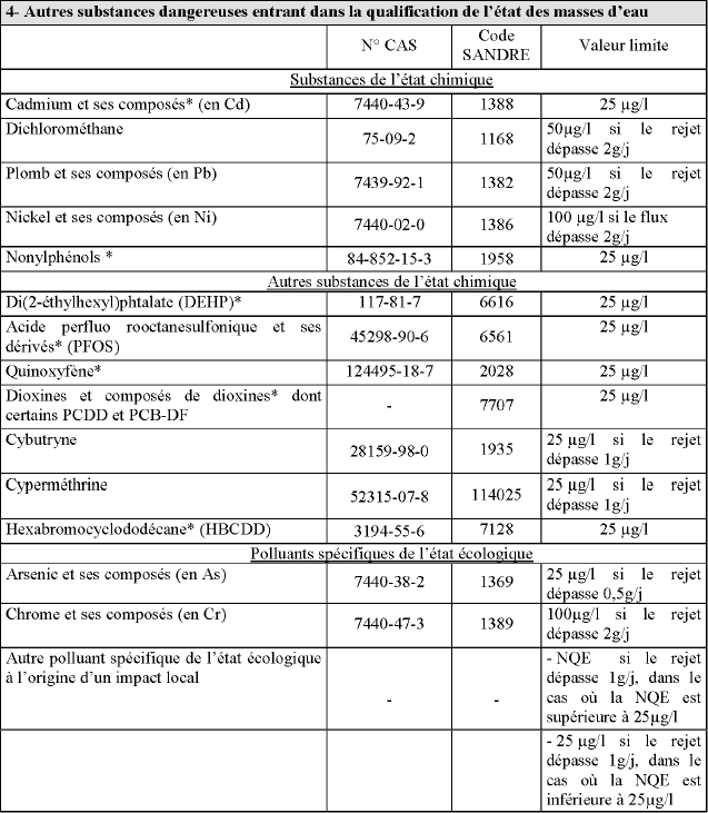 (Arrêté du 24 août 2017) « Polluant spécifique de l'état écologique » : substance dangereuse recensée comme étant déversée en quantité significative dans les masses d'eau de chaque bassin ou sous-bassin hydrographique ;